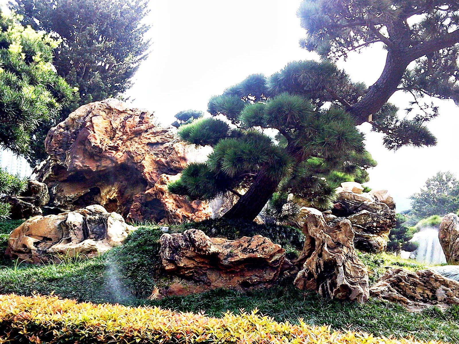 | Beautiful rock and trees landscape greets the Garden visitors |